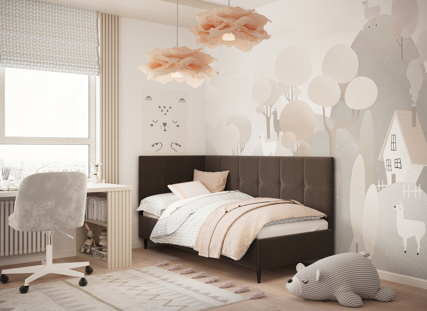 MOON FAMILY 1261 объединяет функциональность и стиль, создавая гармоничное пространство для отдыха и творчества. Кровать доступна в левостороннем и правостороннем исполнении, что позволяет легко адаптировать ее под любые интерьерные особенности.